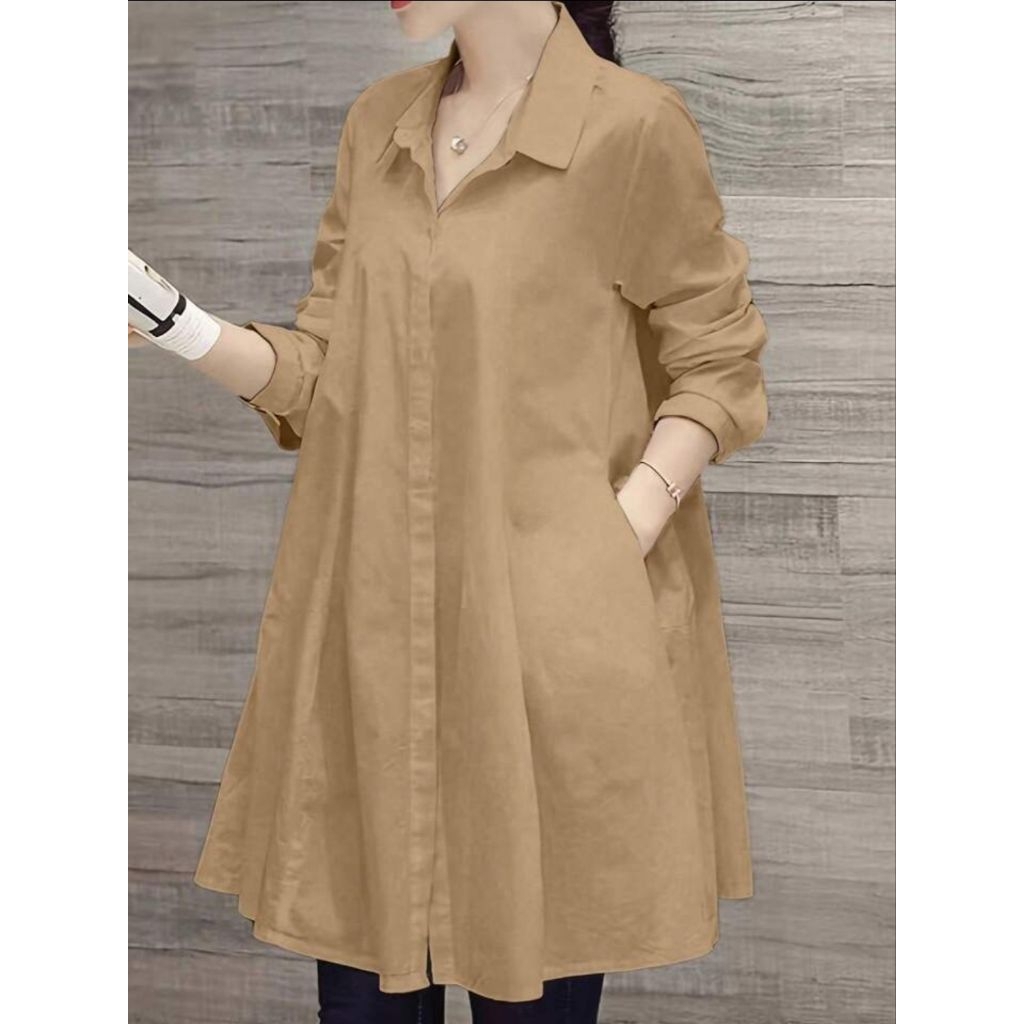 Arunika Blouse - Atasan Overisize LD 120 Wanita Bahan Linen Lengan Panjang Kancing Depan Nyaman