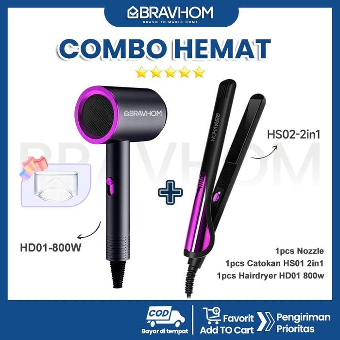 Bravhom Hair Dryer & Styler set Solusi Praktis Rambut Cantik Cepat Kering Portable Rambut