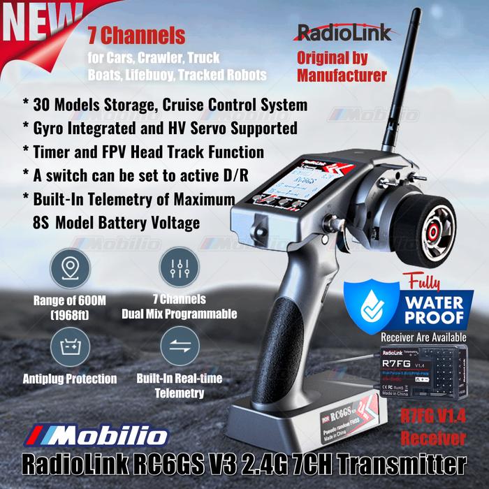 Radiolink RC6GS V3 7 Channels RC Transmitter and Receiver R7FG Fully Waterproof Available for Cars