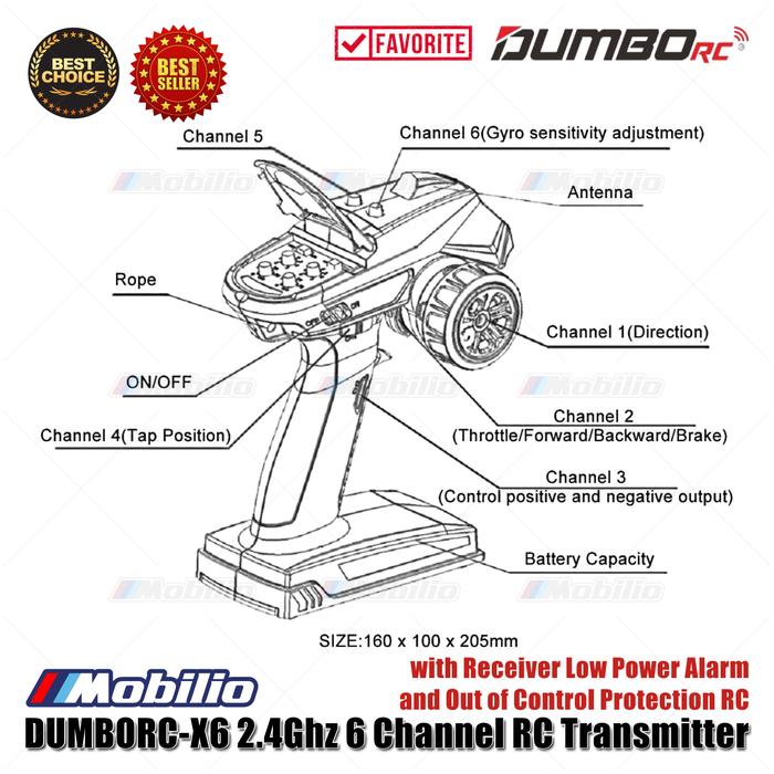 Dumborc X6 2.4Ghz 6 Channel RC Transmitter with Receiver P6F P6FG P6DC Waterproof Version Available