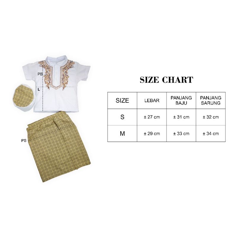 KOKO BAYI Sarkoci Baju Bayi Koko Bayi Muslim Baju Aqiqah Sarung Bayi Set Peci//BORDIR//( SNI)