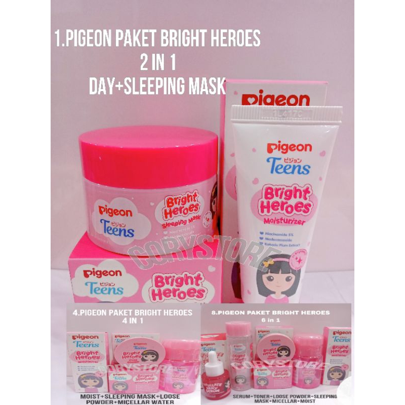 READY PIGEON PAKET BRIGHT HEROES SERIES//DAY//NIGHT//SERUM//TONER //LOOSE POWDER//MICELLAR//JELLY MASK//MECERAHKAN