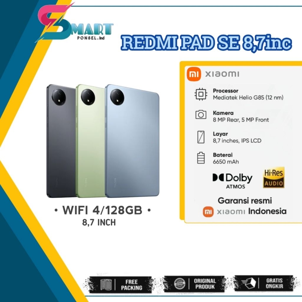 REDMI PAD SE 8,7inch WIFI (4/128GB) GARANSI RESMI 100 PERSEN GARANSI RESMI XIAOMI TAM INDONESIA
