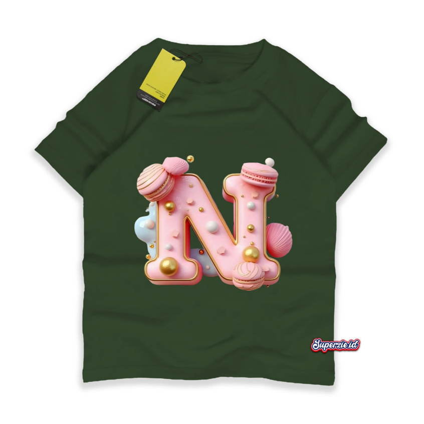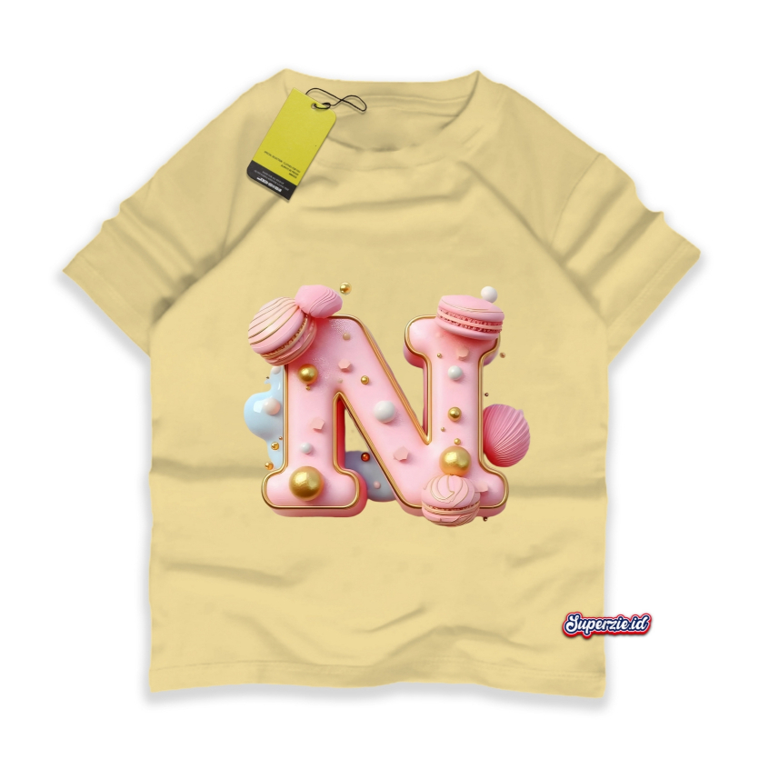 Kaos Anak Perempuan Rgkids Huruf N Cake Macaron Alphabet Sablon Print Dt18
