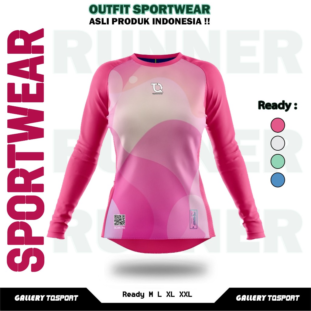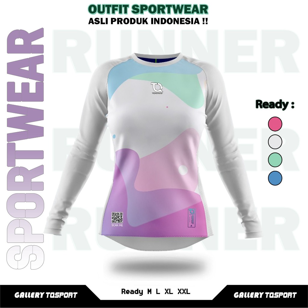 Baju Olahraga Wanita Printing Atasan Lengan Panjang Olahraga Senam Gym Fitness Running
