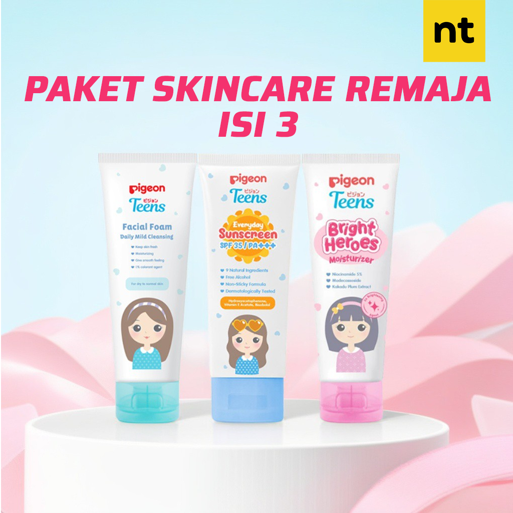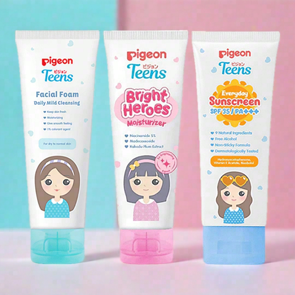 PIGEON TEENS Paket 3 in 1 Skincare Remaja Mencerahkan Wajah - Facial Foam, Moisturizer, Sunscreen