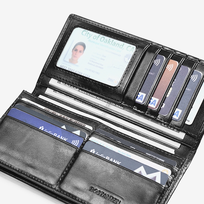 BOSTANTEN Dompet Lipat Panjang Pria Slot Kartu Kulit PU Warna Hitam/Kopi