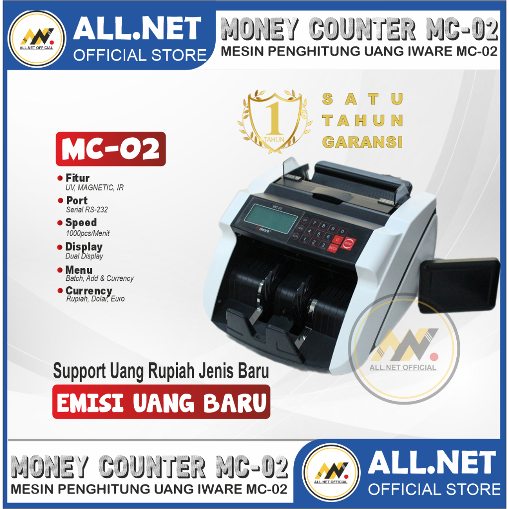 Mesin Penghitung Uang Money Counter Iware MC02 UV Magnetic MG MC-02 Money Bill Counter MC 02 Free External Display