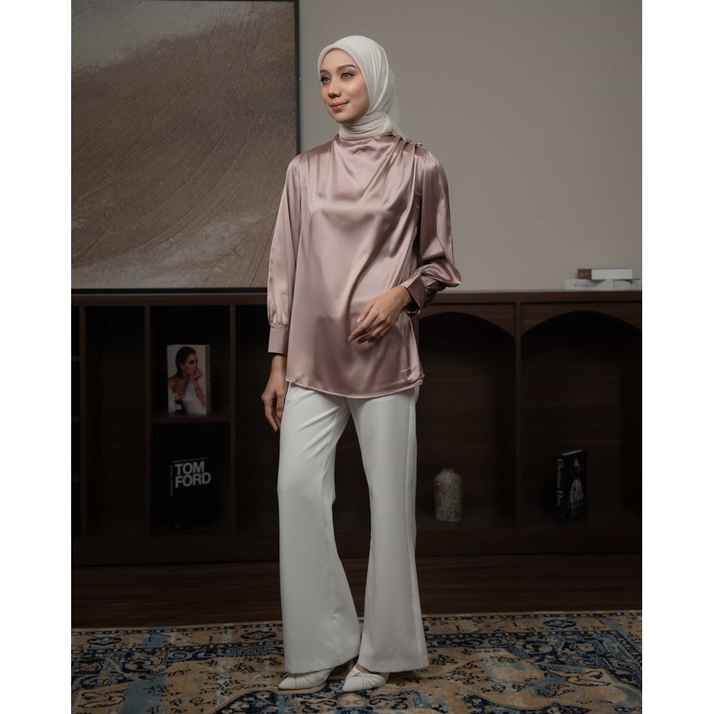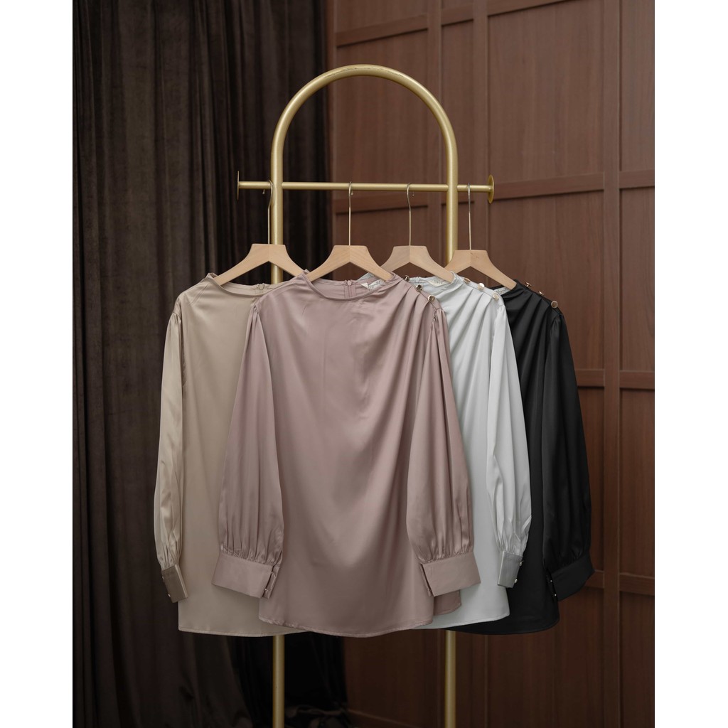 Mayoutfit Chizya Blouse | Blus Kondangan Wanita Baju Lebaran Atasan Silk Premium Drapery Blouse