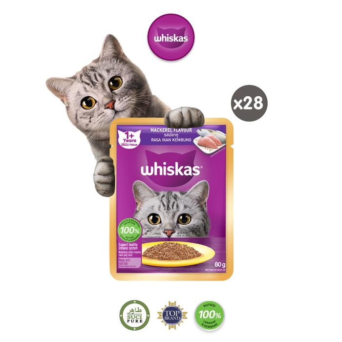WHISKAS Makanan Kucing Basah Pouch 80gr - Isi 28 - Mackerel