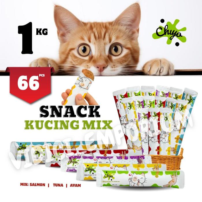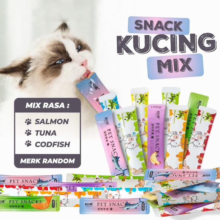 Snack Kucing Mix isi 75 pcs / 50 pcs /Strip Kucing Kecil / Cemilan Kucing/ Snak Penggemukan Makanan - MIX 50 Pcs