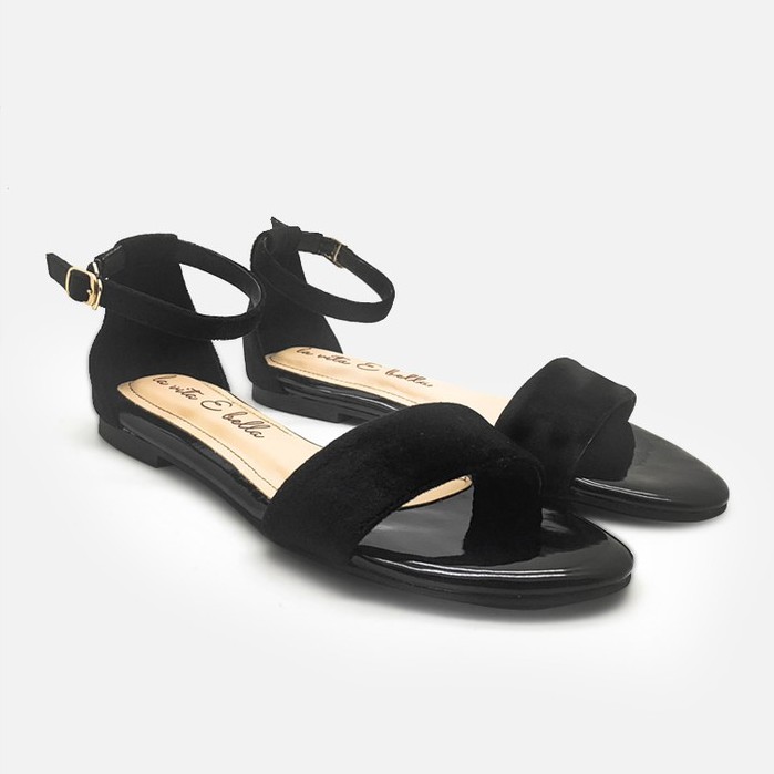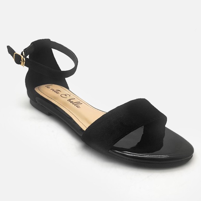 La Vita E Bella Anya Ankle Strap Sandal Flat Wanita Dengan Tali [Lp 528] - Black