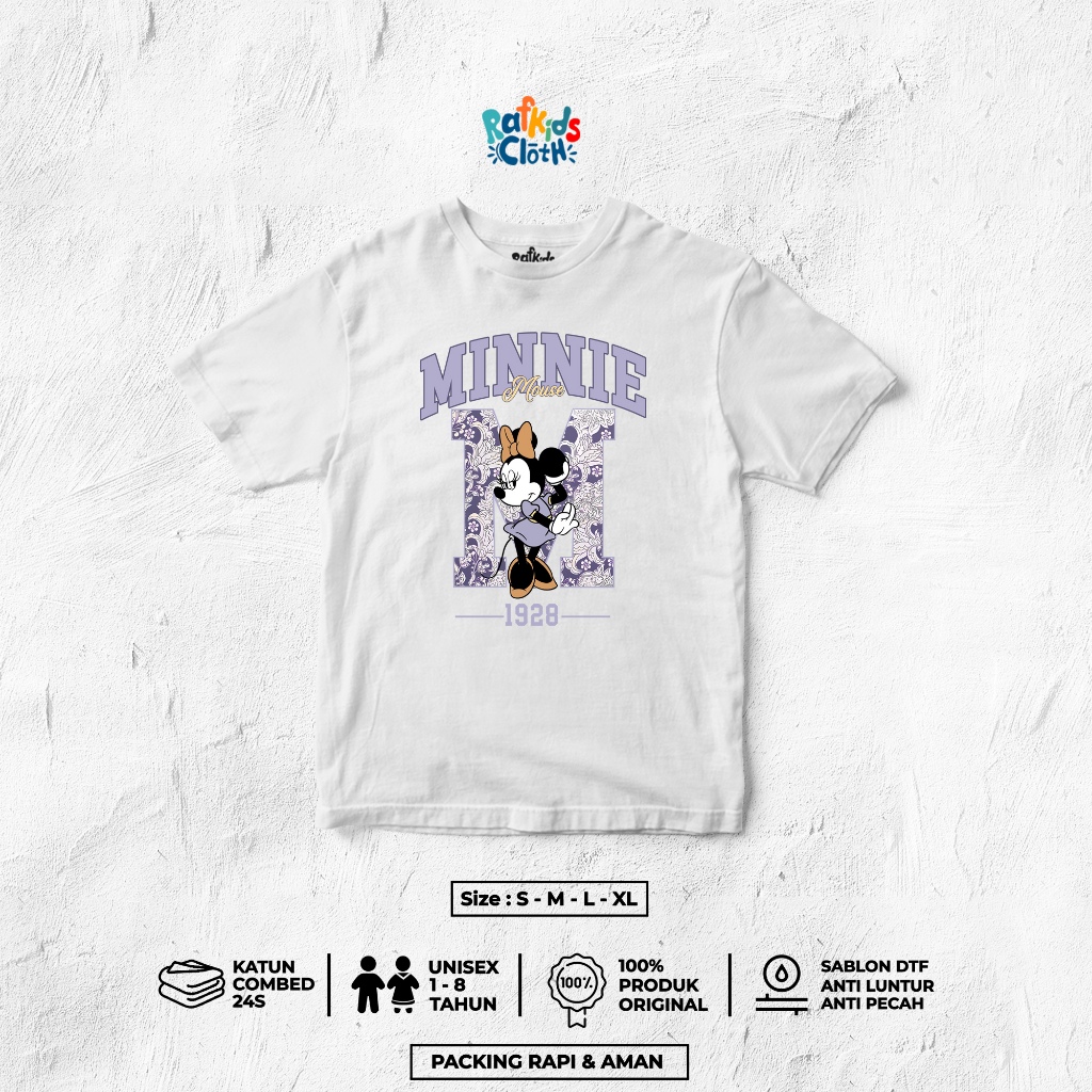 Kaos Anak Perempuan Lengan Pendek Usia 1-8 Tahun Baju Atasan Anak Motif Minnie Mouse Cotton Combed 24S