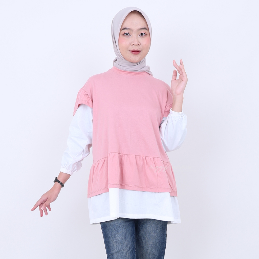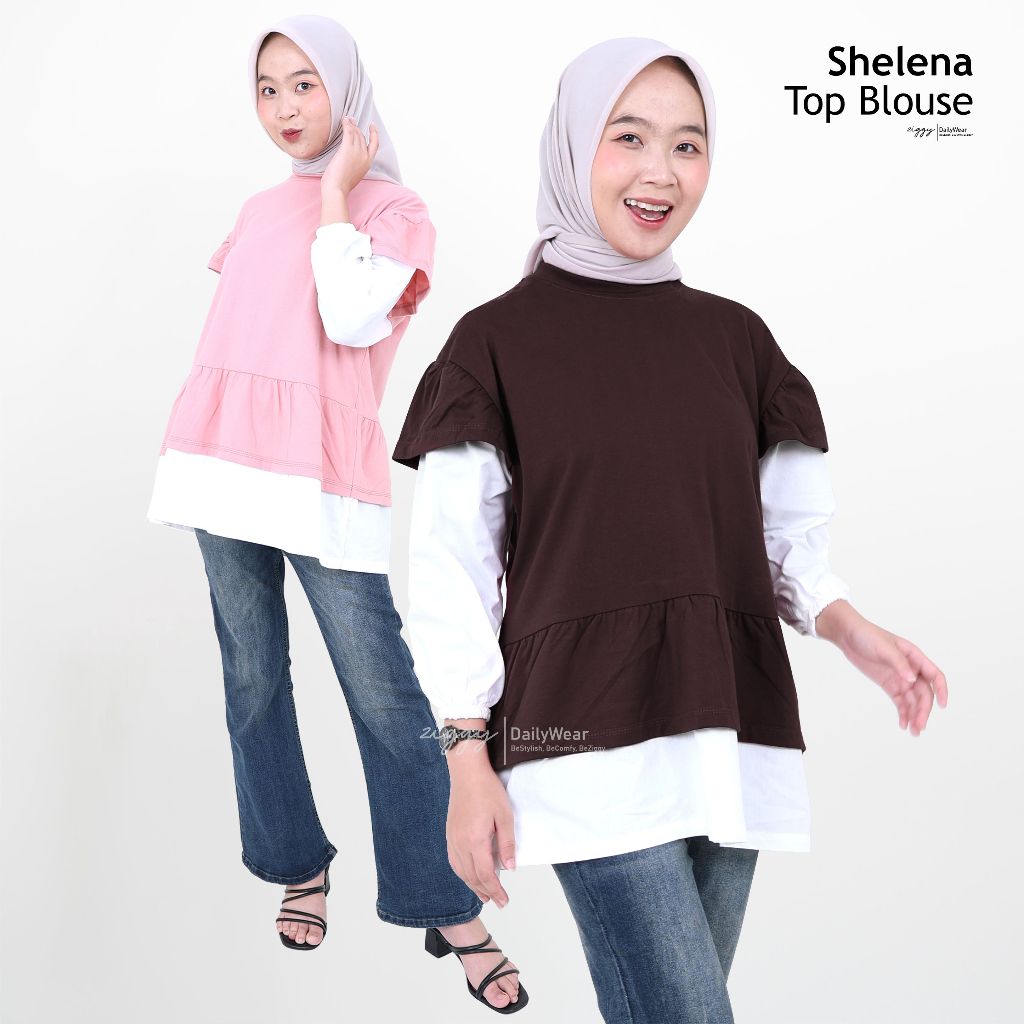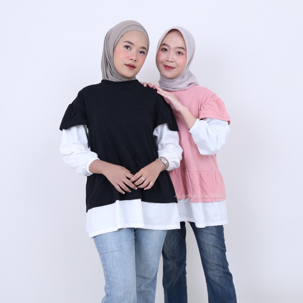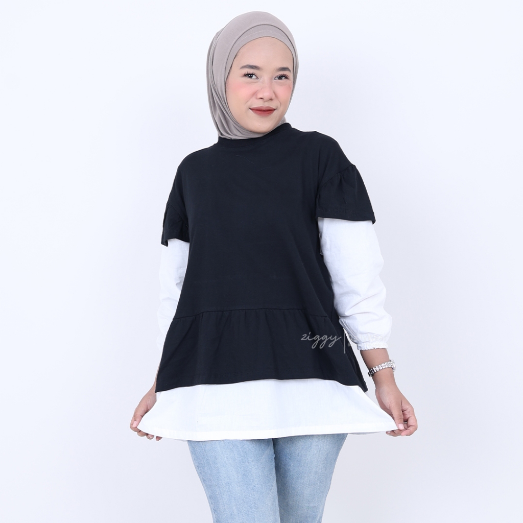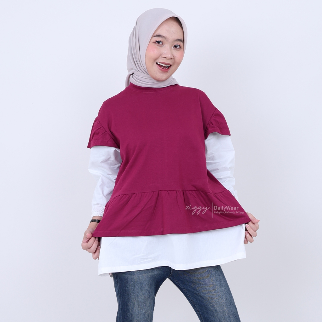 ZIGGY | Shelena Top Blouse Raya Series Atasan Muslim Wanita Oversized Lengan Balon Katun Mix Poplin