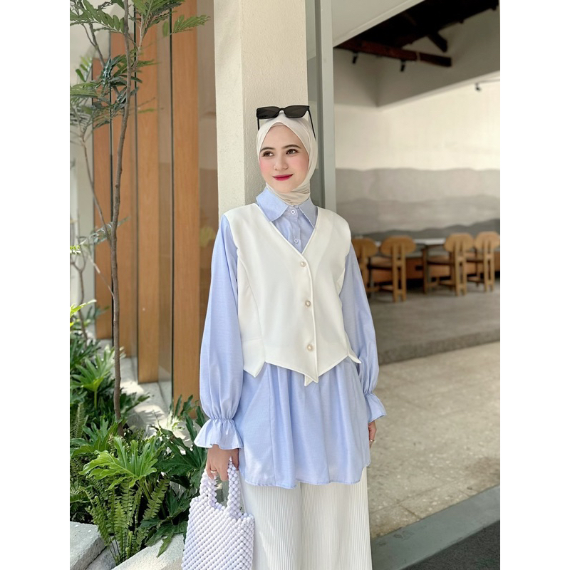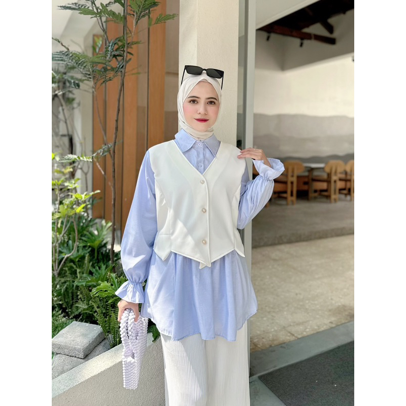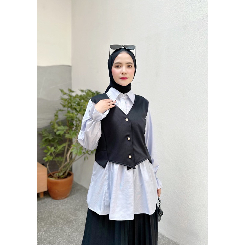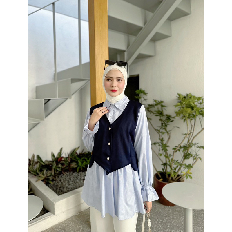 Navy Cloth - AZURA Blouse | Atasan Wanita Premium, Fashion Muslim Korea Style ( 2 SIZE, 3 WARNA, bahan Scuba Bonnie kombinasi Katun )