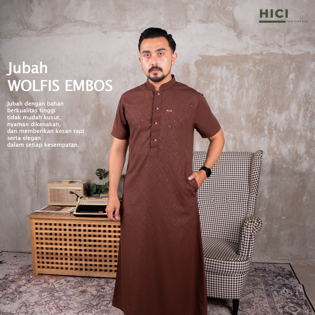 Hici Jubah Muslim EBONY Slimfit Body Bahan Wolfis Embos Batik
