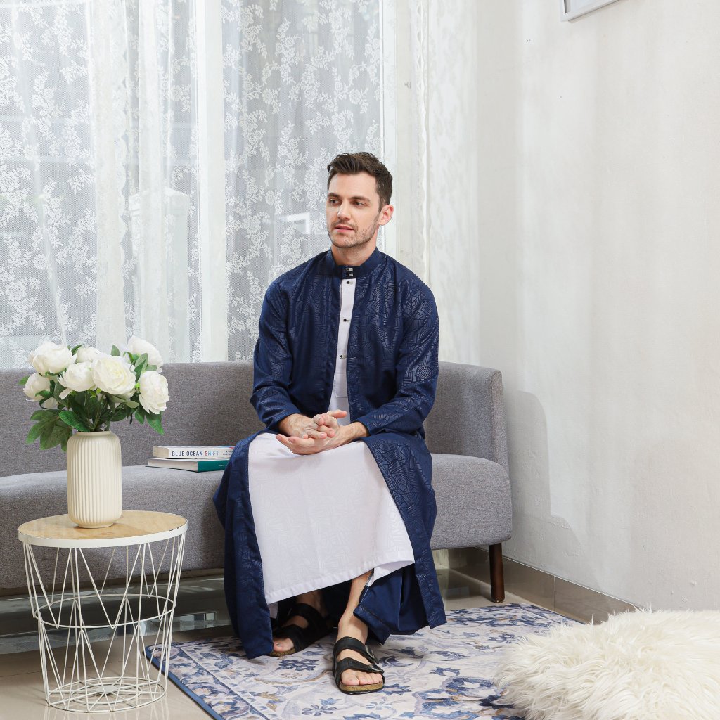 Jubah pria luaran gamis premium lengan panjang motif terbaru gamis AL-AZHAR fashion muslim