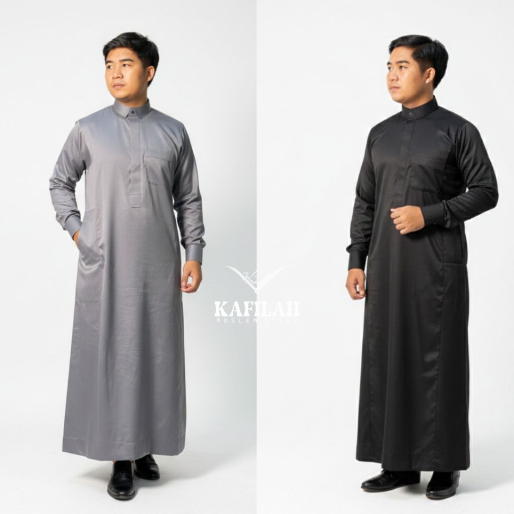 KAFILAH MUSLIM Jubah Zavyan Series Jubah pria slimfit Saudi premium Gamis laki laki dewasa polos kancing snap lengan pan