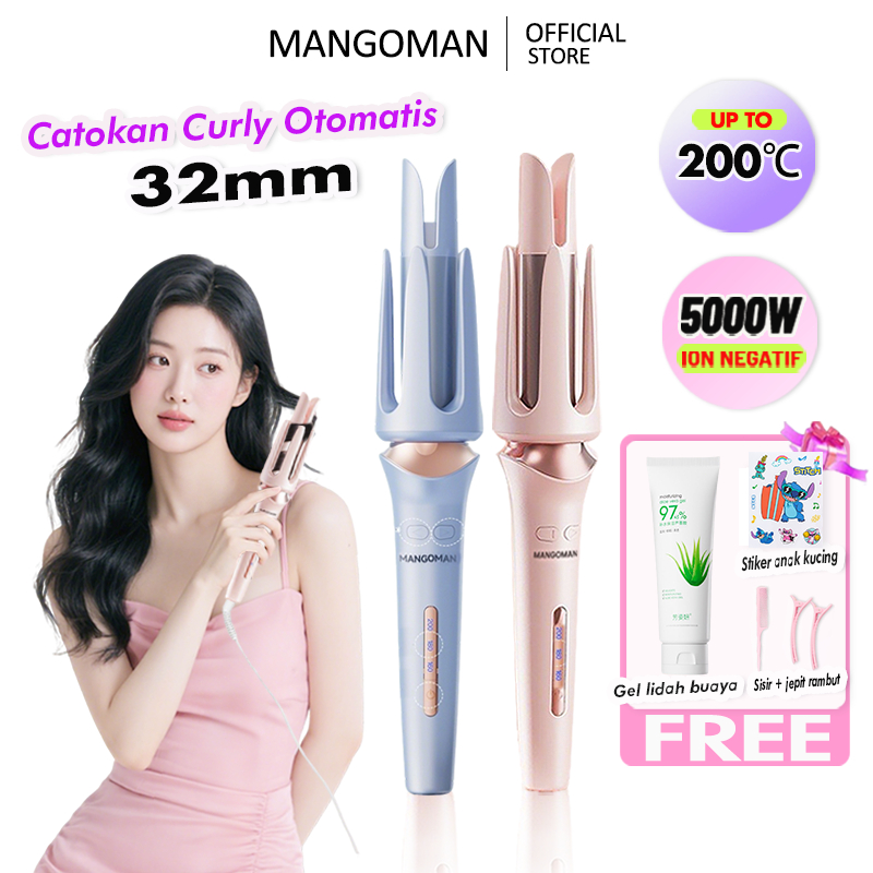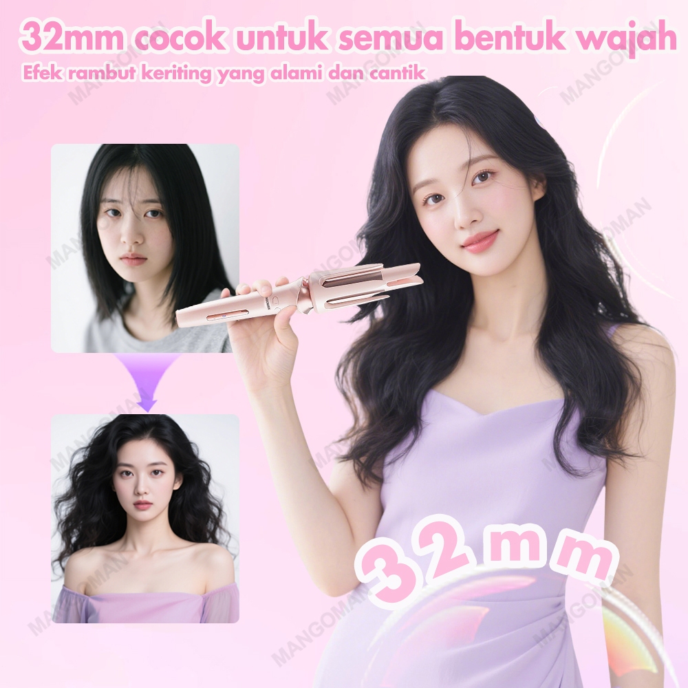 MANGOMAN Catokan Curly Otomatis 32MM Ceramics Curly Catokan Keriting with LED 3 Pengaturan Suhu Tampilan Suhu 5000W Nega