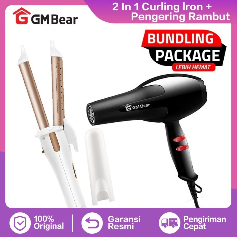 GM Bear Bundle Hair Dryer Pengering Rambut 1115 - Catokan Rambut Curly Lurus 2in1 Catok Rambut 1173