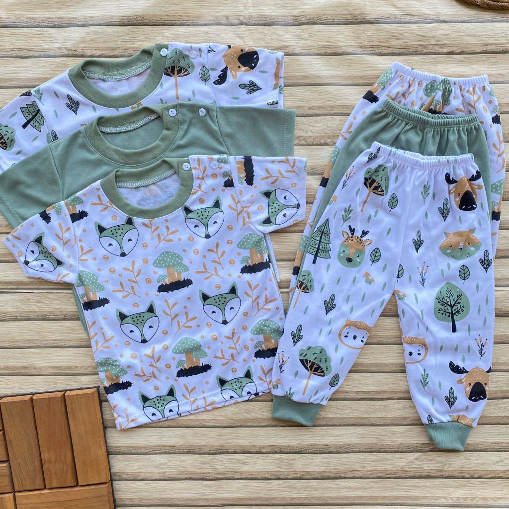 Setelan Bayi Usia 3 12 Bulan Oblong Bayi Laki Laki, Perempuan Lengan Pendek Celana Panjang Piyama Isi 3 Pcs Baby & Kids