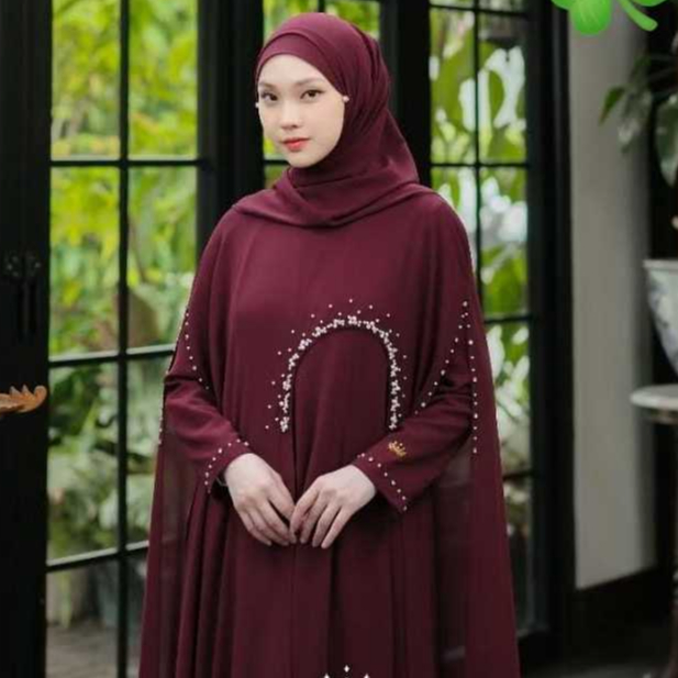 Abaya Gamis Payet Mutiara Terbaru Bahan Ceruty Baby Doll Outfit Kekinian Wanita Muslim 2025 By Luna