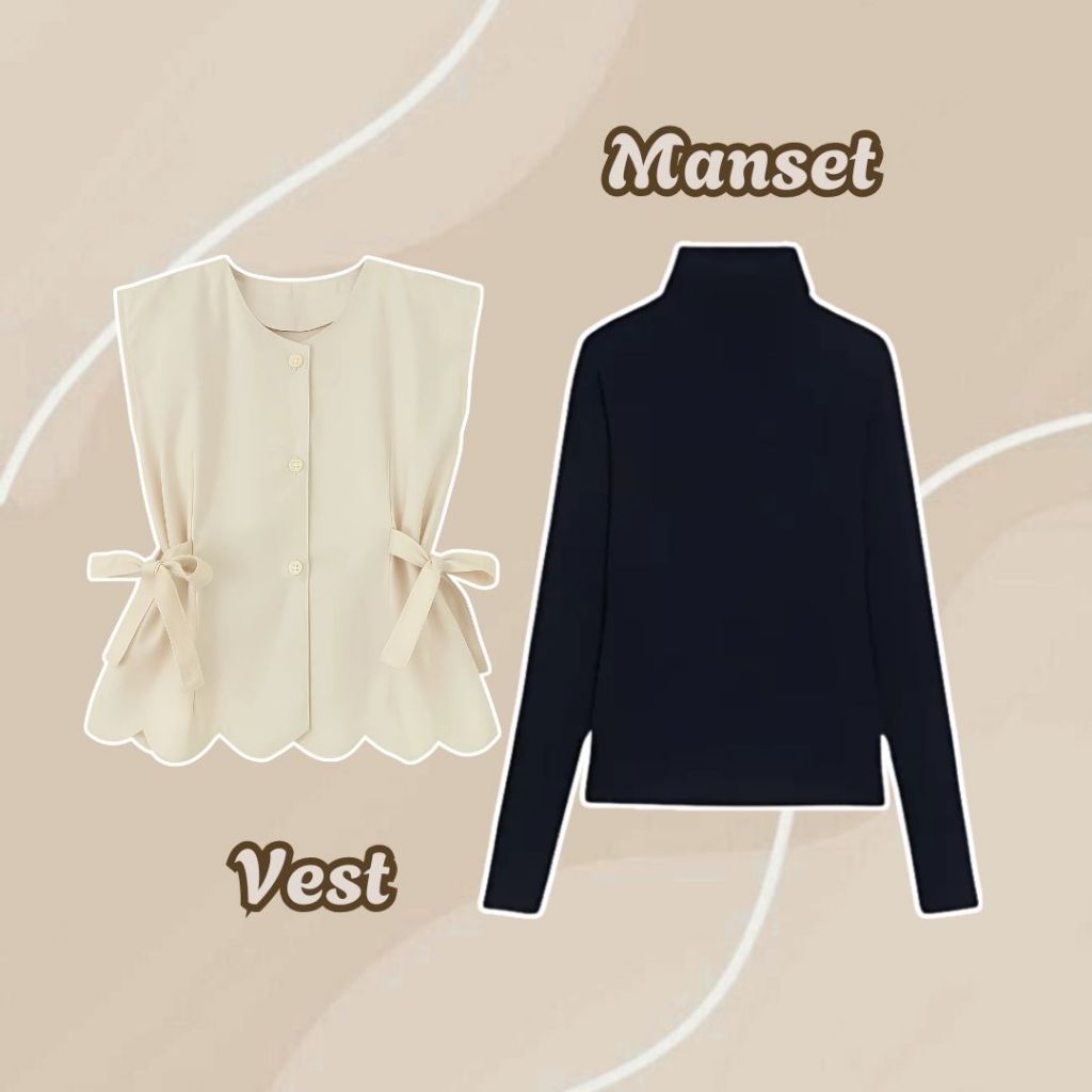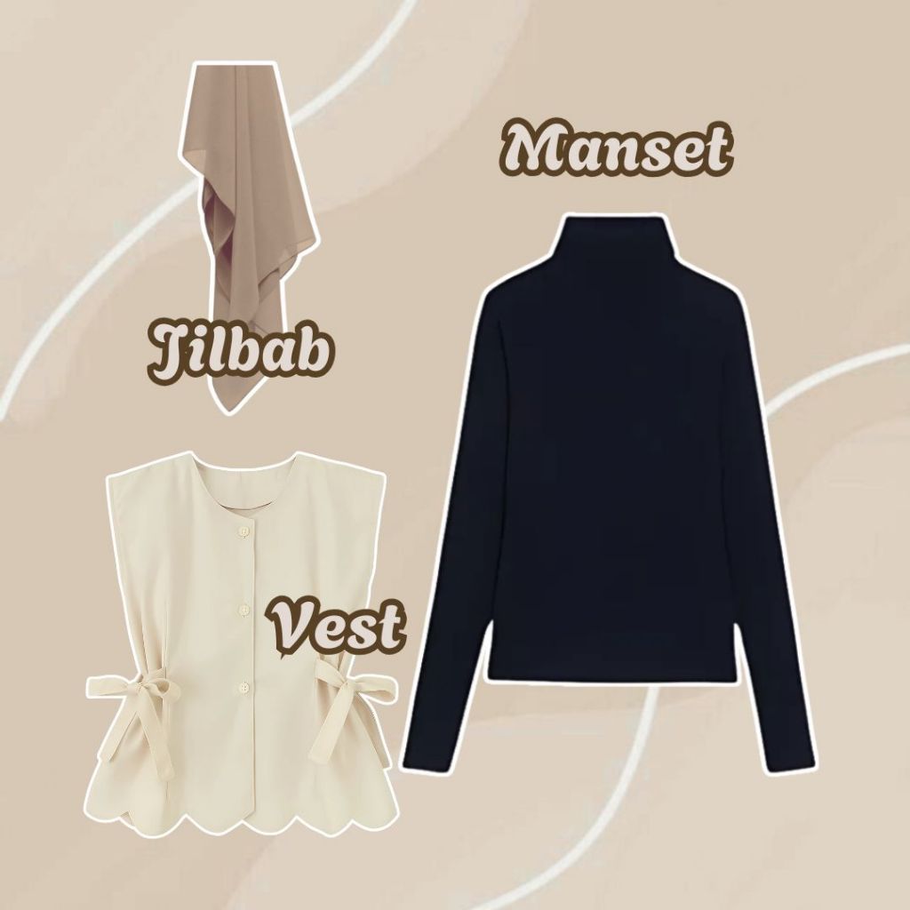 One Set 4in1 Vest Manset Celana Cutbray Hijab Segi Empat Bella | OOTD fit wanita cewek anak remaja hijab modern kekinian korean style hang main ngopi cafe kuliah DL163