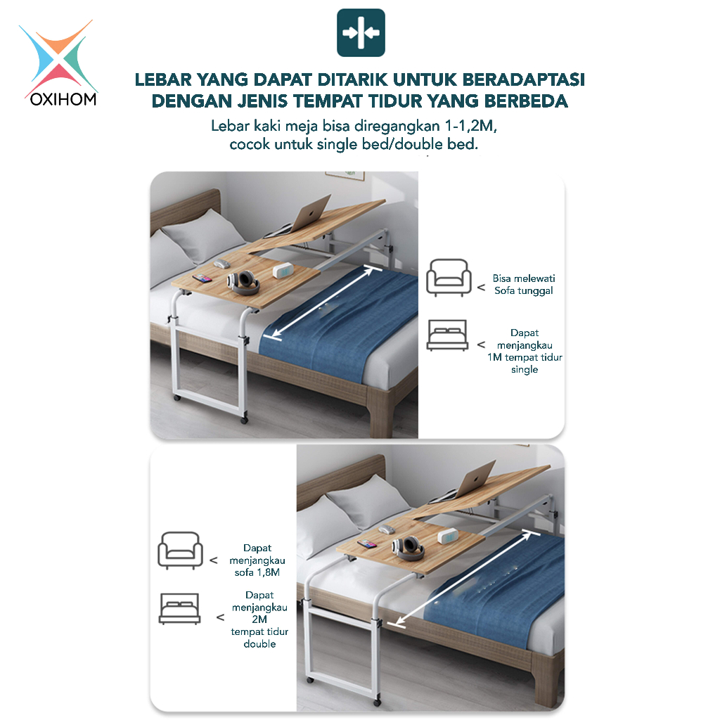 Oxihom Meja Tempat Tidur Meja Kasur Meja Laptop Meja Ranjang Geser