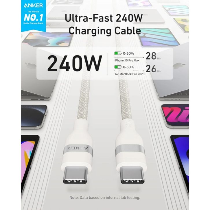 USB C to USB C 240W Upcycled Braided Fast Charging Cable 3FT 6FT - A82E2