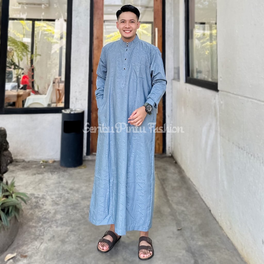 GAMIS PRIA MUSLIM JUBAH GAMIS PRIA LENGAN PANJANG BUSANA MUSLIM PRIA JUBAH CORAK TERBARU WARNA PUTIH HITAM MERAH BIRU A