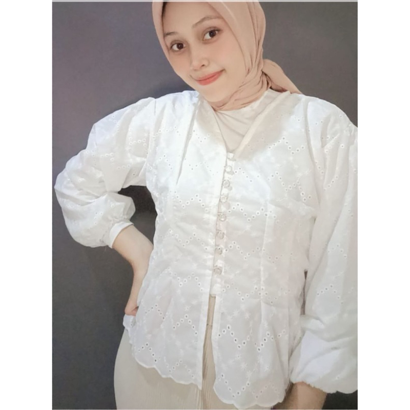 Bora top blouse atasan baju wanita katun bordir bolong hijab friendly kondangan vintage lace shirt