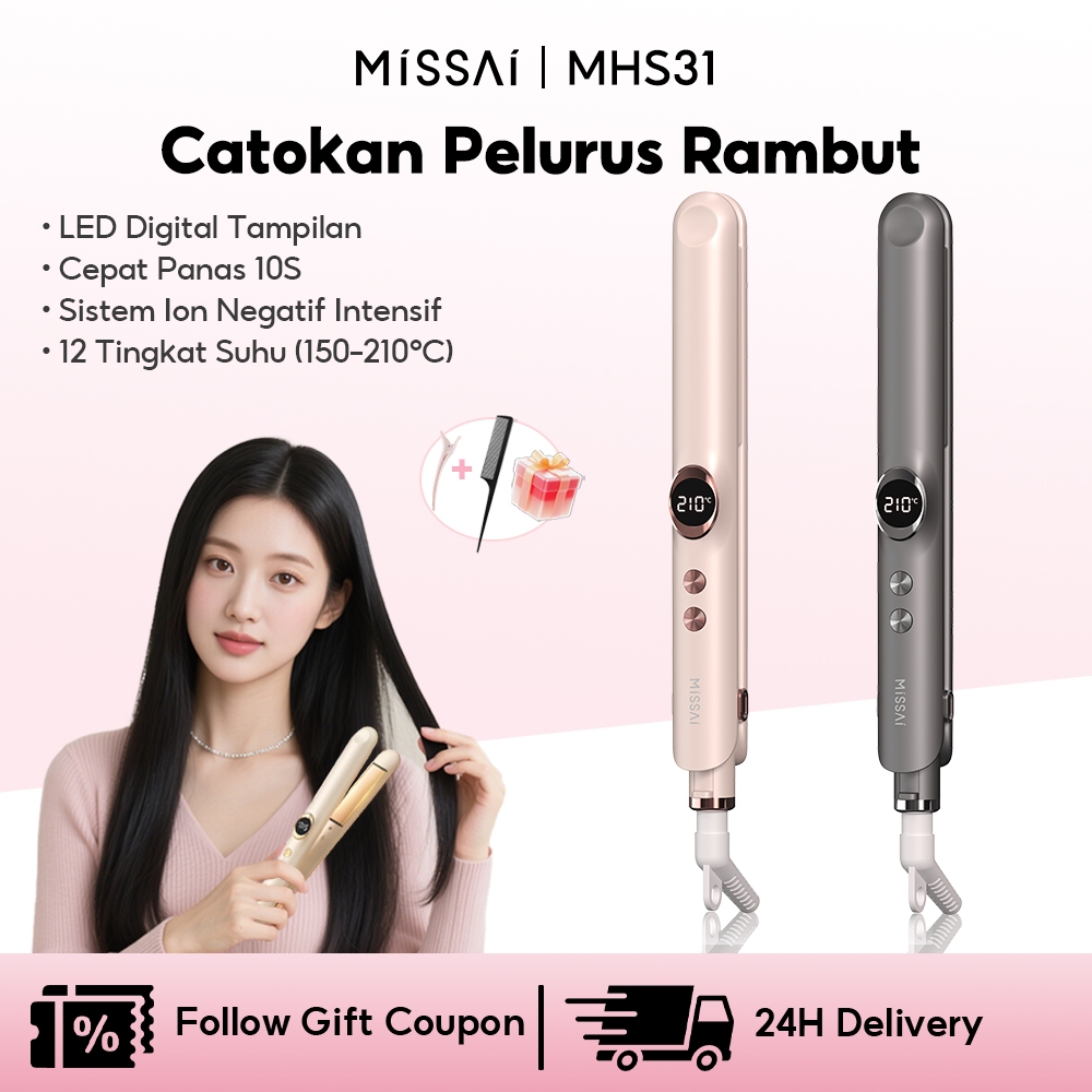 MISSAI Catokan Rambut Pelurus Dan Curly 2 in 1 Tampilan Digital LED Pelurus Rambut Panas Cepat 10 Detik Lon Negatif Meli