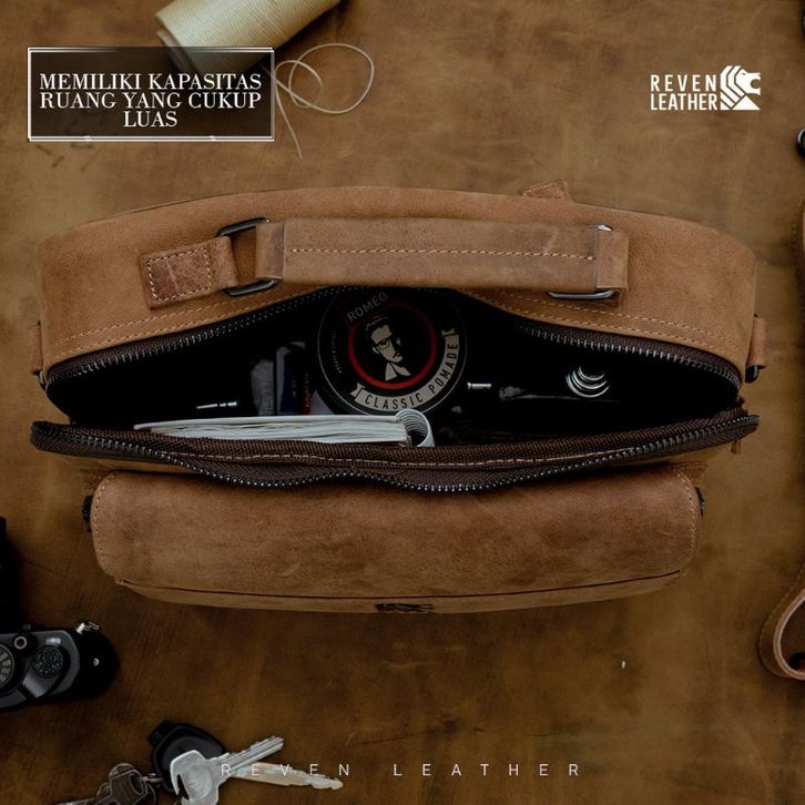 Terbaru REVEN LEATHER - Tas Kantor Selempang Pria Bima Slingbag Multifungsi Serbaguna Bahan Kulit Sapi Asli Crazy Horse
