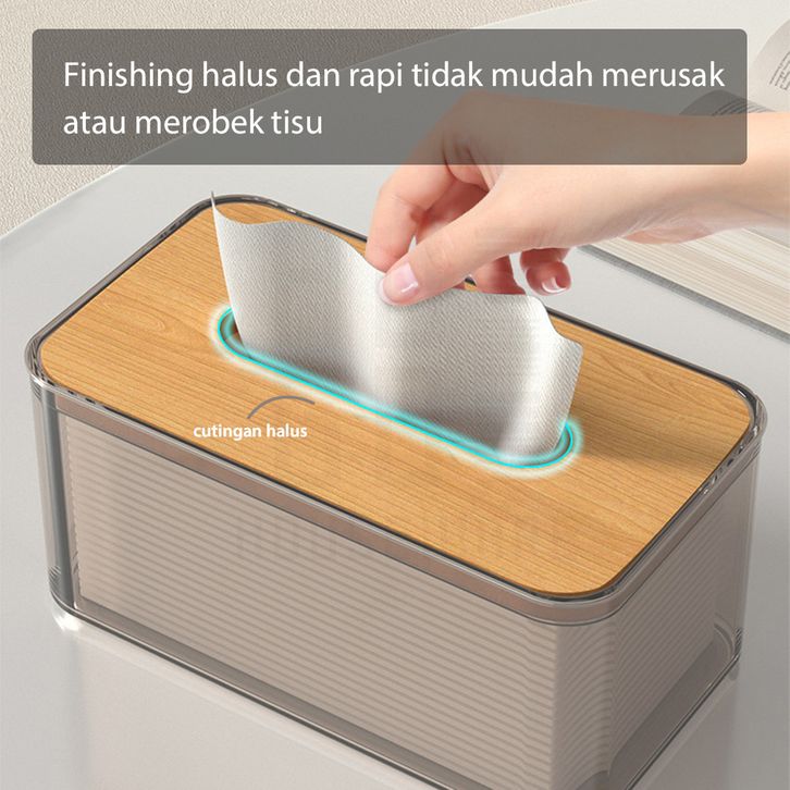 HUGO Tempat Penyimpanan Tissue Transparan Kotak Tisu Estetik Minimalis Tutup Kayu Premium Quality