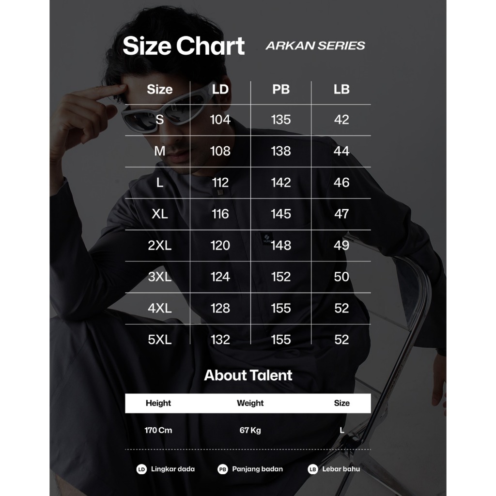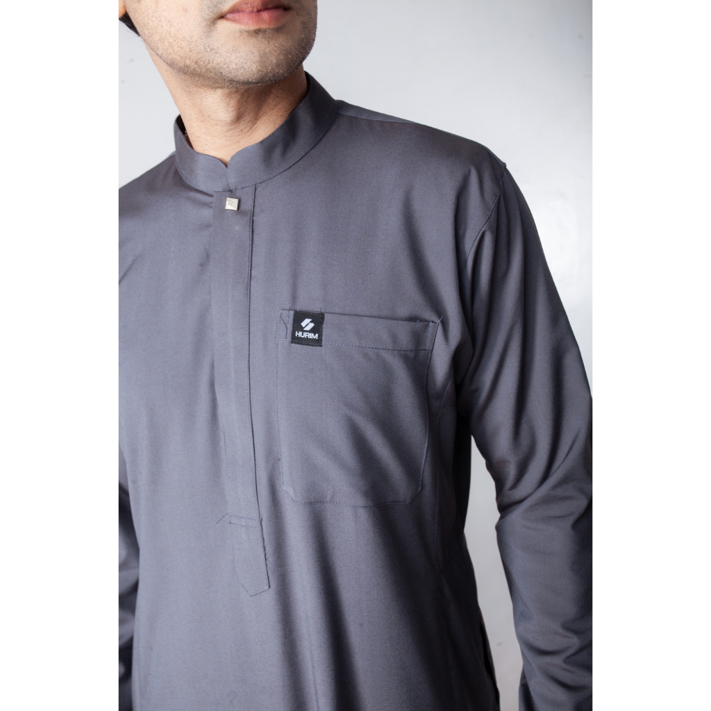 Jubah Pria Hurim Arkan Series – Gamis Arab Hitam Bahan Polyrayon Adem & Nyaman