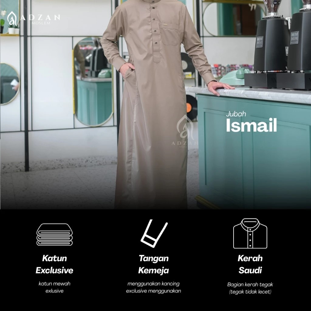 Adzan Moslem Gamis Jubah Ismail Pria Slimfit Premium Baju Muslim Modern Putih