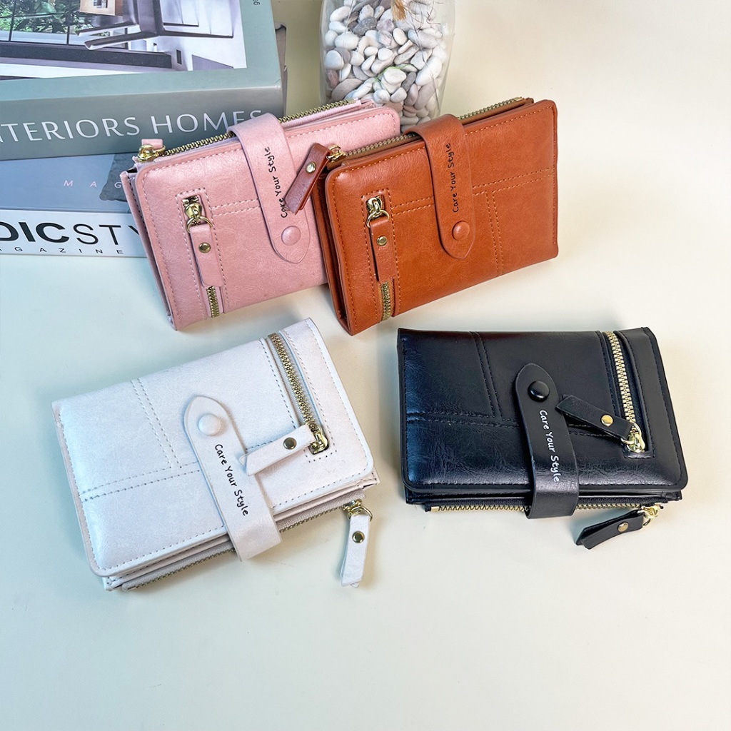Dompet Lipat Mini Wanita Korea Kecil Kekinian Kulit Fashion Cewek Style Multifungsi Termurah D106