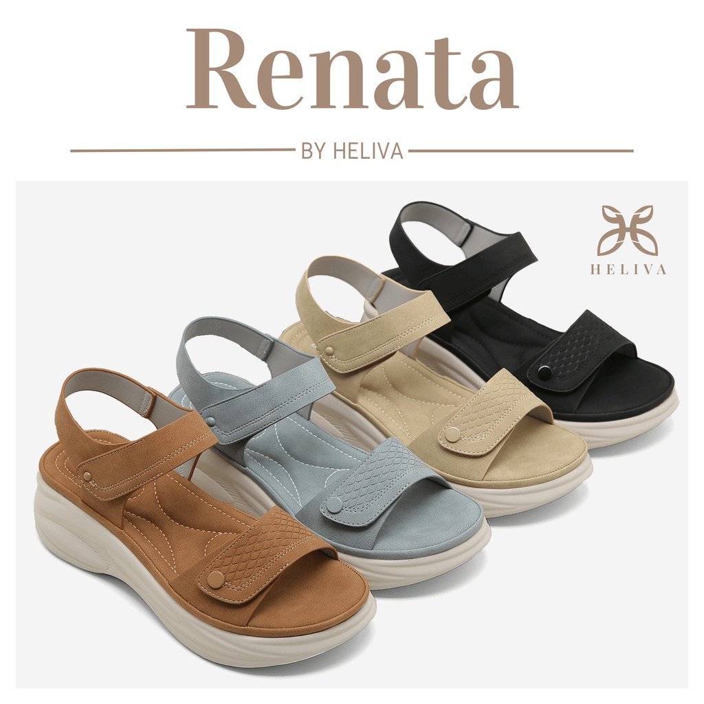 Heliva Renata Sandal Tali Serat Velcro Tinggi Sol 6Cm Hv5608