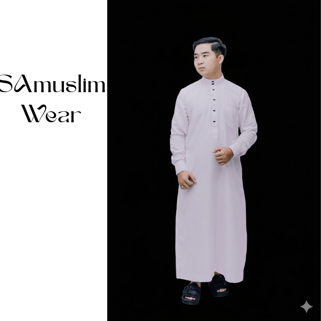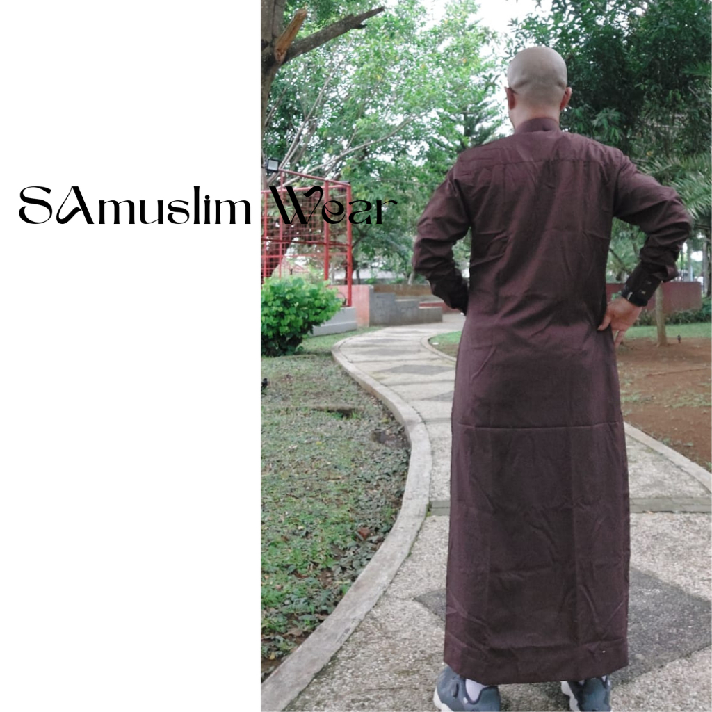 SAmuslim Wear Jubah Pria Dewasa Gamis Pria Dewasa Lengan Panjang Bahan Katun Polywoven Kancing Snap