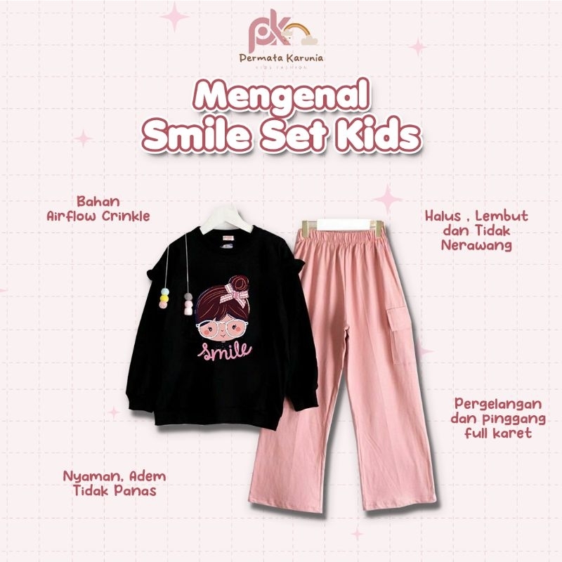 SMILE SET KIDS ( 3 TAHUN - 13 TAHUN ) CELANA CARGO // CRINCLE PRINTING // ONESET ANAK // SETELAN SMILE