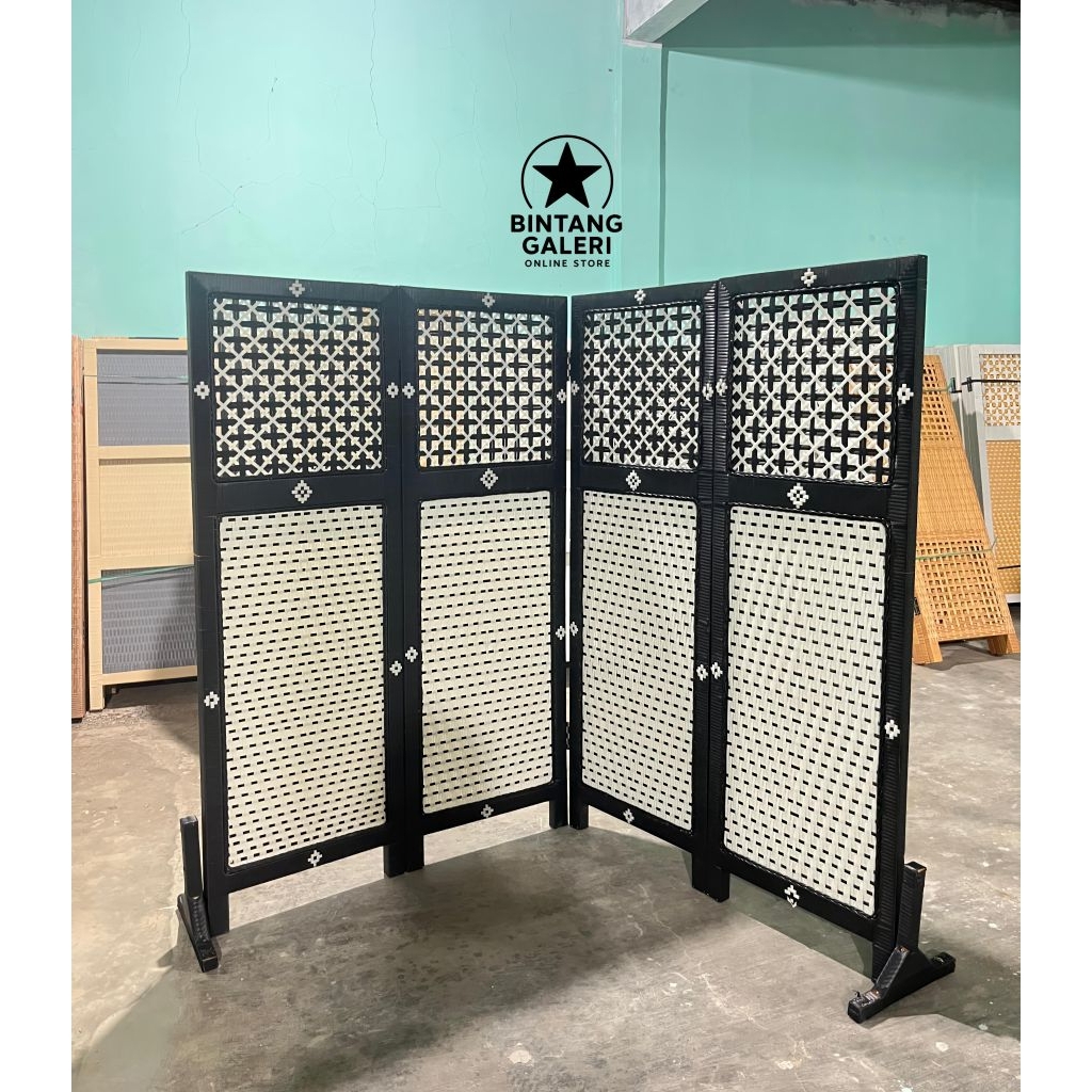 4 PINTU Sketsel Rotan Sintetis Motif Pembatas Ruangan Partisi Sekat Ruangan Murah