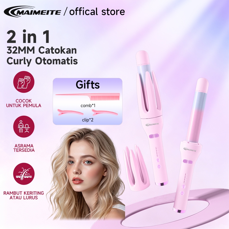 MAIMEITE Curly Rambut Otomatis 2 IN 1 Catokan Rambut 32MM Catokan Curly Otomatis 4 Gears Catokan Keriting Rambut Otomati