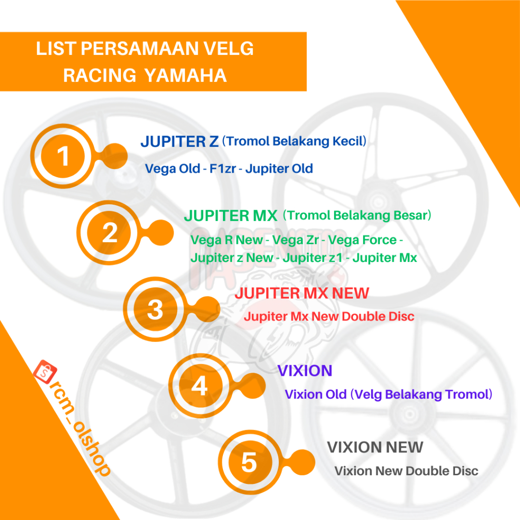 Velg Racing Supra, Fit New, Revo, Supra x 125, Kharisma, Grand, Kirana 1.40/1.60 Ring 17