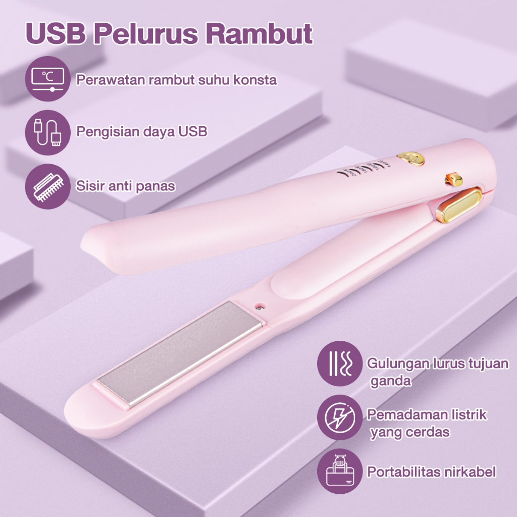 CkeyiN Hair Straightener 2in1 Cordless Hair Curly Catokan Rambut Lurus Portabel Catok Pelurus Rambut