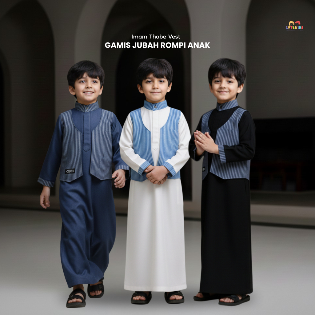 Gamis Jubah Rompi Anak Laki-Laki Imam Thobe Vest Usia 1-8 Tahun Rompi Lepas Pakai Nyaman Dan Adem