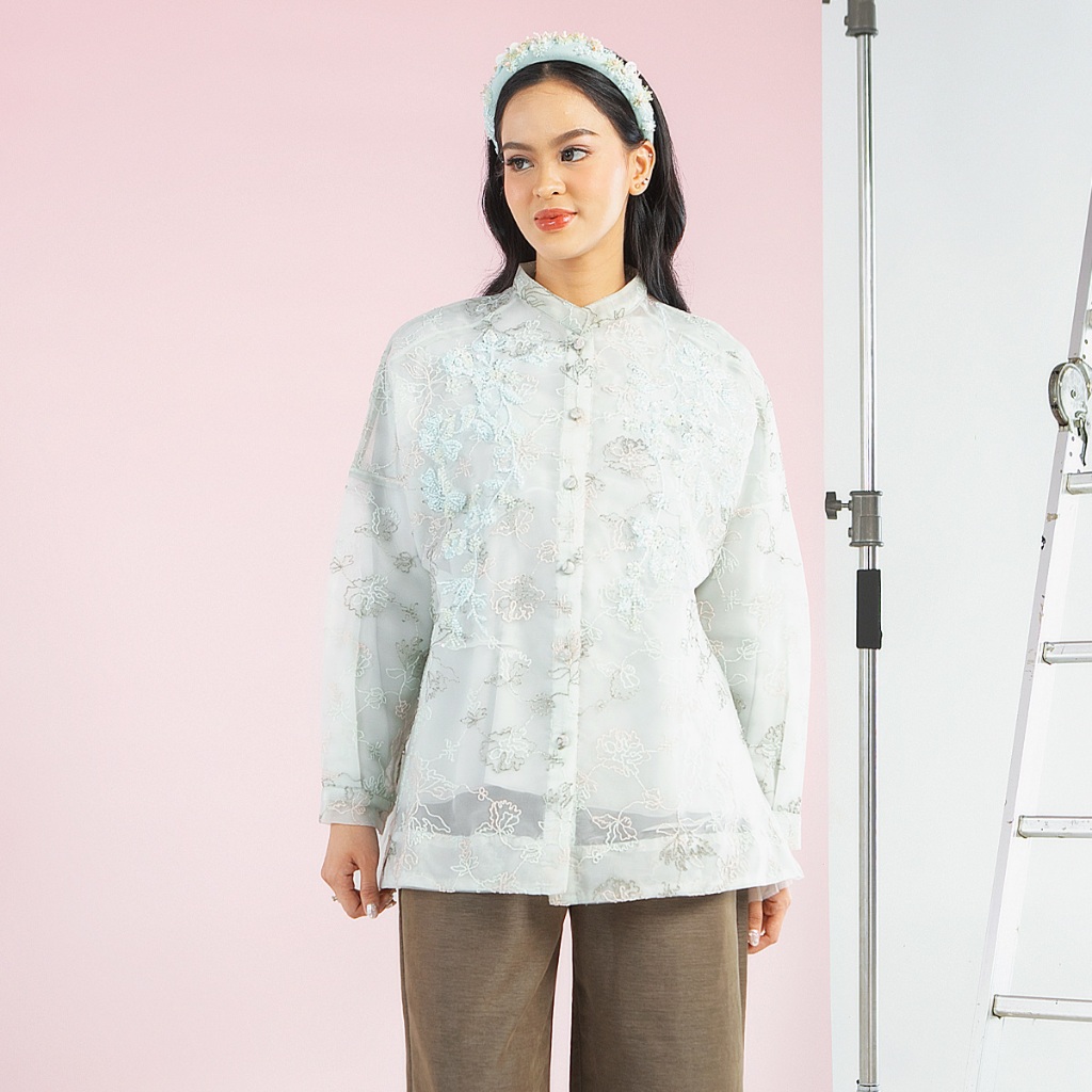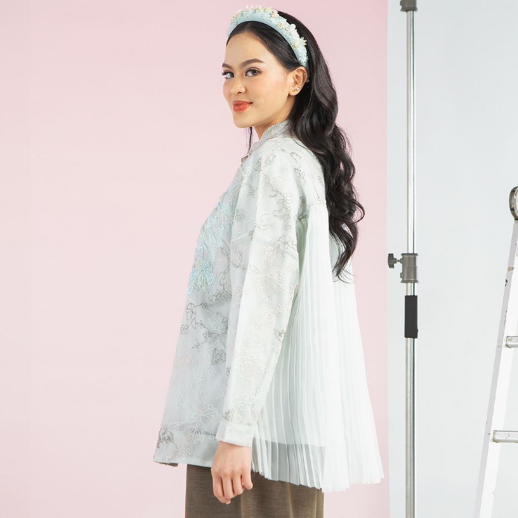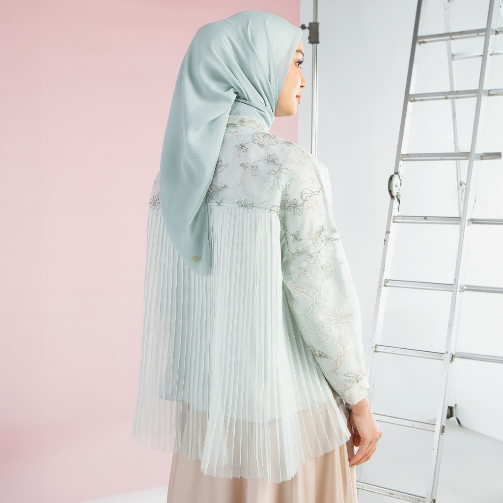 HijabChic Moa Mint Top - Baju Kondangan Elegan Brukat Payet Bunga Premium Pleats Belakang Cantik