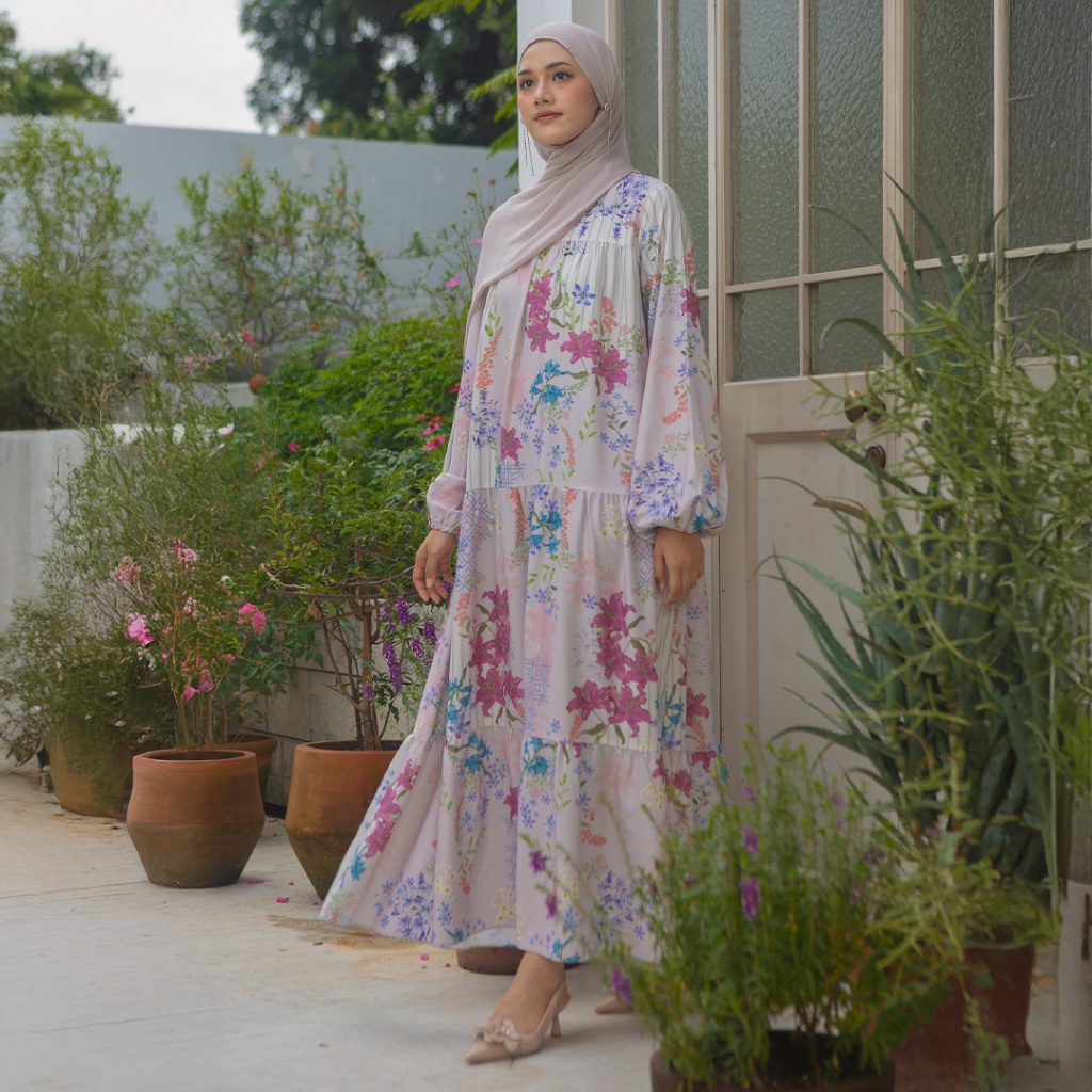 HijabChic Vena Lavender Bloom Dress - Dress Lebaran Flowy Nyaman Rapi