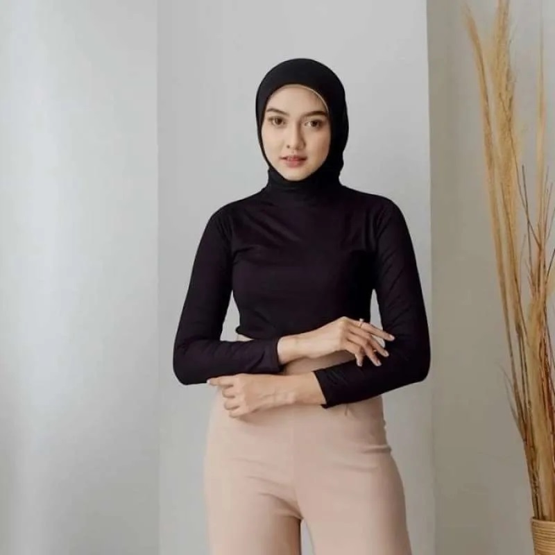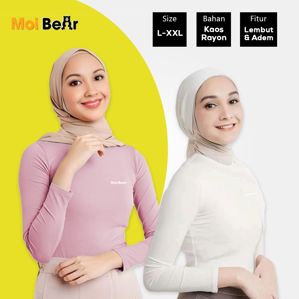 MOI Manset Kaos Lengan Panjang Daleman Inner Basic Wanita Turtleneck Bahan Rayon / Baju Atasan Fit Polos Nyaman