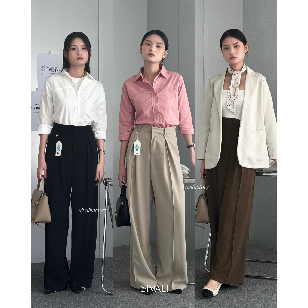 Sivali Orin Pleated Pants - Highwaist Cullote Polyester - Celana Kulot Panjang Wanita Anti Kusut - Celana Kantor Formal