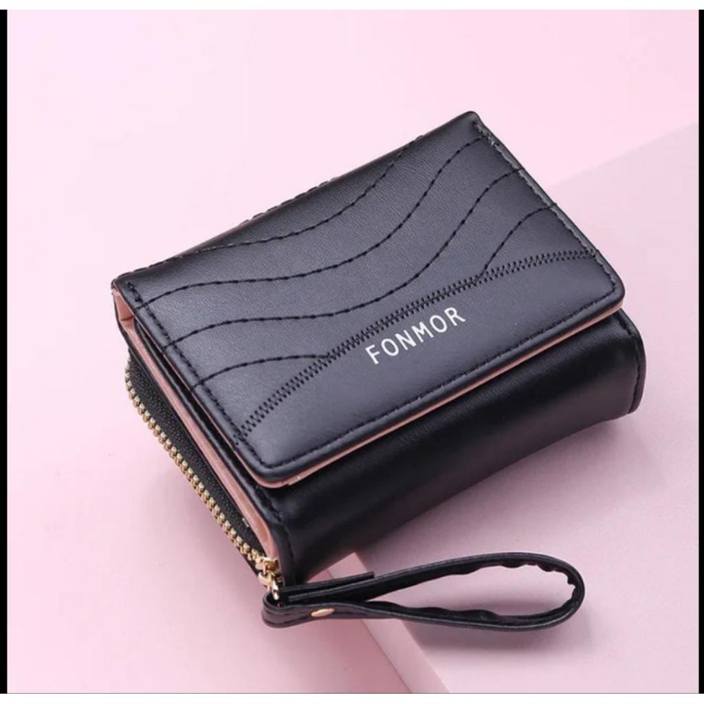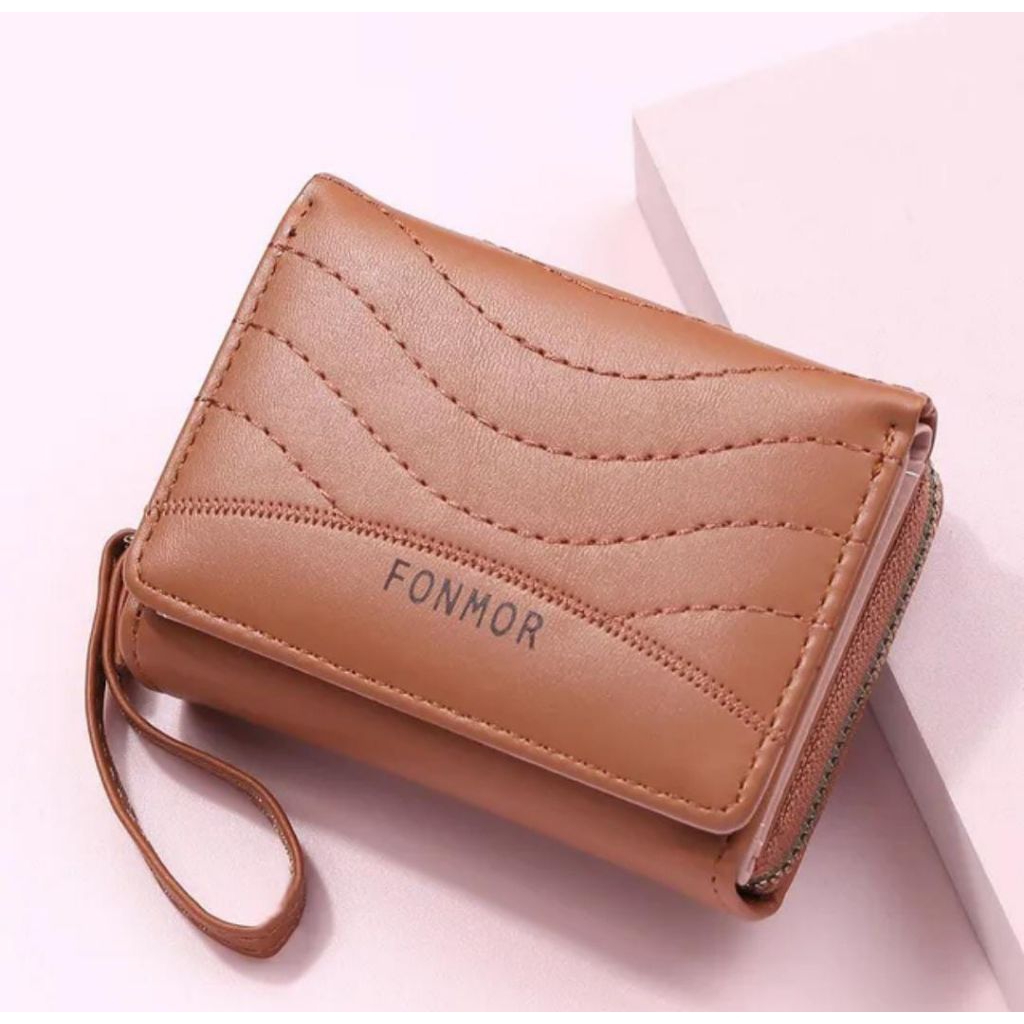 Dompet Wanita Fonmor Lipat Kulit Garis-Garis Mini
